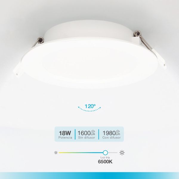 Kruhový vestavný LED panel se spotřebou 18W, fungující na napětí 230V.
