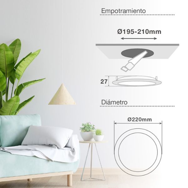 Tento vestavný led panel můžete montovat do podhledů v interiéru. Výhodou je minimální výška – tyto vestavné LED panely můžete nainstalovat do stropních podhledů nebo sádrokartonových stěn s volným prostorem pouhé 3cm! Velikost kruhového montážního otvoru musí být v rozmezí 195-210mm. Jedná se o svítidlo se zabudovaným, nevyměnitelným LED zdrojem světla. Tělo led panelu je vyrobeno ze speciálního teploodvádějícího plastu, zajišťuje efektivní odvod tepla a tím zvyšuje životnost led čipů vydávajících světlo.