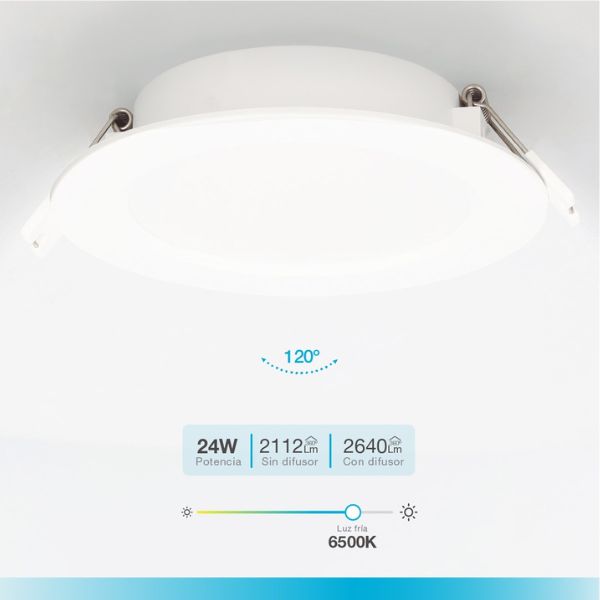 Kruhový vestavný LED panel se spotřebou 24W, fungující na napětí 230V.