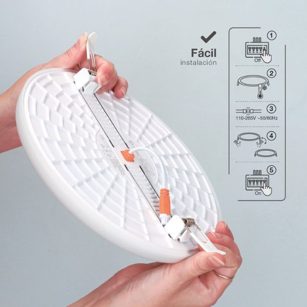 Hlavní výhodou tohoto svítidla je nastavitelný montážní výřez, který umožňuje snadnou instalaci i při rekonstrukcích nebo výměně starších svítidel. Na zadní straně svítidla si zvolíte velikost montážního otvoru mezi 75 a 205mm v krocích po 10mm. Toto je ojedinělé řešení, které ocení zákazníci vyměňující podhledová svítidla, kdy bývá problém sehnat nová, která budou pasovat do již vytvořených montážních otvorů.