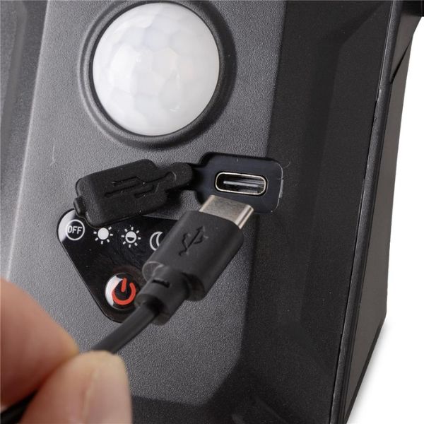 Přes den napájí solární panel na horní straně led svítidla zabudovanou nabíjecí baterii 18650 s kapacitou 1200mAh (plné nabití trvá 6-8 hodin na denním světle), po setmění spíná čidlo pohybu s dosahem 3-5m LED světelný zdroj sestávající ze SMD led diod. Celkem vydrží plně nabité led svítidlo fungovat až 8 hodin, v závislosti na roční době a počasí. Jedná se o solárně nabíjené svítidlo, které potřebuje k nabití sluneční svit. Je proto potřeba počítat s tím, že během krátkých zimních dnů, pokud bude celou dobu zataženo, se nabije jen minimálně a vydrží svítit jen krátkou dobu. Pro tento případ máte možnost svítidlo sejmout ze zdi a dobít přiloženým USB kabelem do počítače nebo do nabíječky telefonu.
