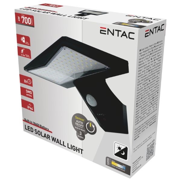 Německá značka Entac: Venkovní solární led svítidlo s čidlem pohybu je ideální pro osvětlení venkovních prostorů bez přívodu elektrického proudu. Montuje se na zeď nebo na sloupek pomocí přiložených 2 vrutů s hmoždinkami, na něž se zahákne.