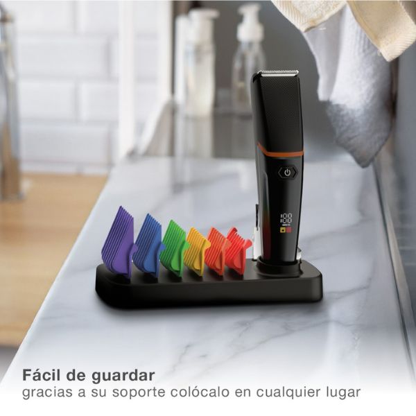 Součástí balení je 6 barevných hřebenových nástavců pro snadnou orientaci a rychlou volbu délky, které se velmi snadno nasazují na strojek: